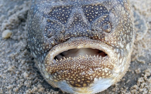 Это живое существо вида Astroscopus guttatus с не самой привлекательной внешностью получило название крапчатый звездочет. Такое название вызывает ассоциации с какой-нибудь мелкой яркой рыбешкой с крупными глазами, однако эта рыба вовсе не такая. Кто же еще может считать звезды? Очевидно, это дьявол, который сидит на своем троне где-то в аду.