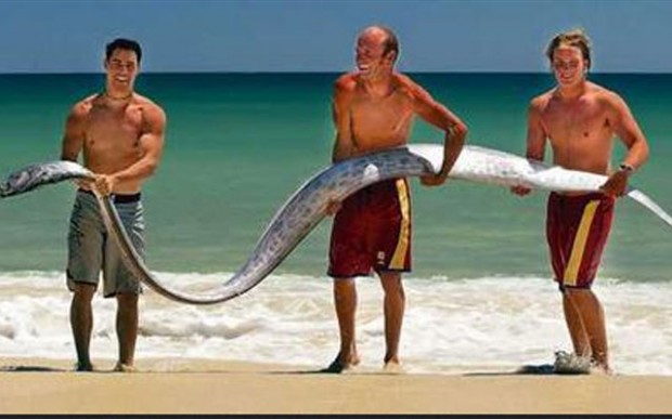 Ремнетел или сельдяной король является самой длинной костной рыбой в мире. Какова же длина этого гиганта? Например, в 1996 году в Калифорнии американские военные поймали 7-метрового ремнетела, вытащить которого из воды оказалось задачей не из легких. Эти гиганты очень редко встречаются, а большинство тех, кого удается обнаружить, уже мертвы. Хотя в мертвом состоянии подобный монстр куда лучше, чем в живом. По-видимому, именно это существо стало прообразом легенд о морском змее – страшном морском чудовище.
