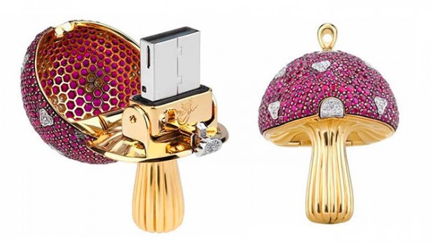 Швейцарская ювелирная компания La Maison Shawish превратила обычный флеш-накопитель в предмет роскоши, запустив линейку самых дорогих в мире USB-флешек Magic Mushrooms, выполненных в виде грибов, инкрустированных бриллиантами.