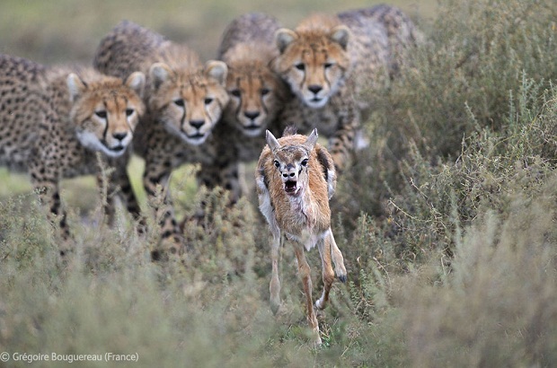 Самка гепарда поймала, но не убила газель Томсона, чтобы детеныши могли попрактиковаться в охоте.