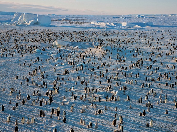 В колонии на ледяном море Росса императорские пингвины греются в лучах летнего солнца. Расстояние до открытой воды меняется в зависимости от сезона. В разгар зимы птицам порой приходится пешком преодолевать многие километры, чтобы найти еду.