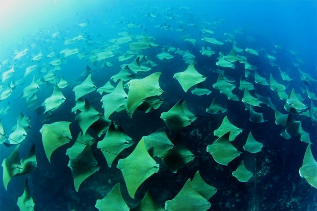 Скаты перемещаются огромными группами по 10 тысяч особей, заполняя поверхность моря всевозможными оттенками золота.