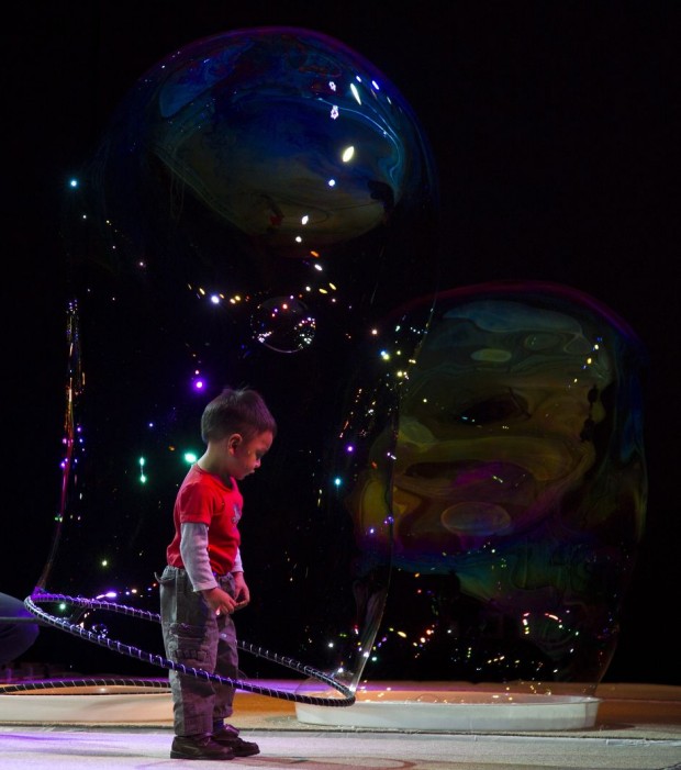 Мальчик в мыльном пузыре перед основным выступлением, на котором был установлен новый мировой рекорд.