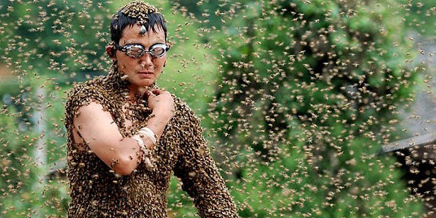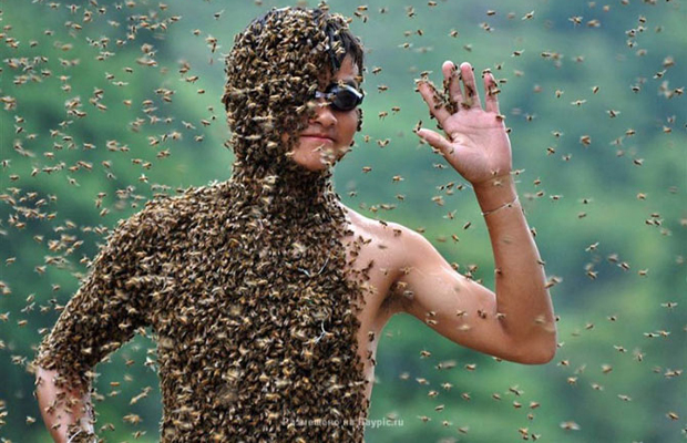 Китайский фермер Ванг Далин стал победителем в удивительном соревновании, на участников которого должны приземлиться как можно больше пчел.