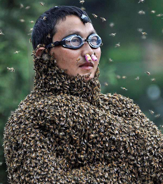 Мистера Ванга Далина признали победителем – за шестьдесят минут на него село количество пчел, общий вес который достиг 26,86 килограммов, по сообщениям местных газет. На мистера Ли Конгдзянга село в общей сложности 22,9 килограмм пчел.