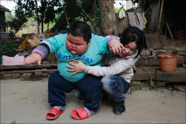 Малыш Хао разросся до таких размеров, что его мать Чен Йон уже просто не в состоянии взять своего «кроху» на руки: Мой муж худо-бедно, но справляется с этой нелегкой задачей, а я просто не в силах взять Хао на руки или просто посадить его к себе на колени. Из-за этого он еще больше плачет и капризничает, – рассказывает несчастная мать.