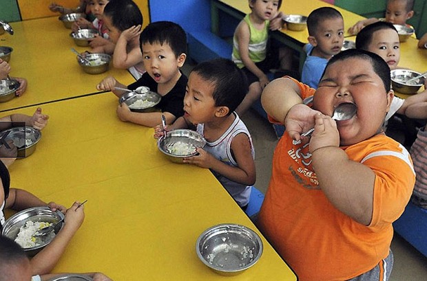 Гигантский трехлетний ребенок из Китая весит 59.87 килограмм и съедает в обед по 3 огромные тарелки риса.