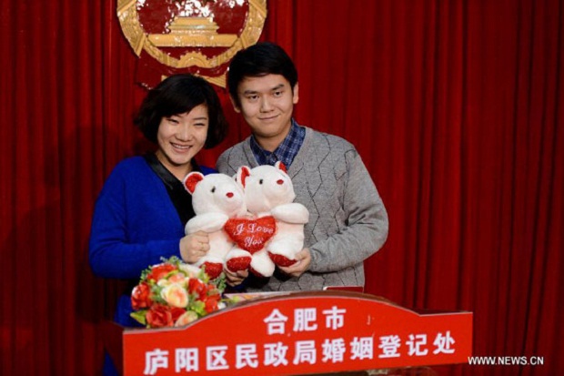 По некоторым данным, количество брачующихся сегодня превысило даже, чем в «счастливое число» 12.12.12, что по-китайски звучит как любить-любить-любить. Лишь в южном мегаполисе Гуанчжоу количество пар, которые записались на регистрацию, превысило 5000.