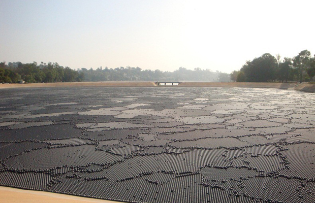 Для борьбы с этим явлением было решено высыпать на поверхность воды 400 тысяч черных пластиковых шариков, которые будут поглощать ультрафиолетовое излучение.