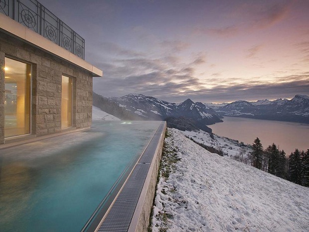 В отеле Villa Honegg в Швейцарии находится пожалуй самый впечатляющий зимний бассейн.