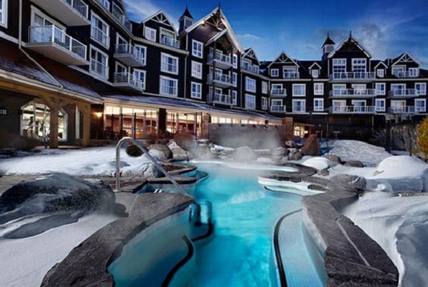 Бассейн отеля Chalet le, Франция. Бассейн с видом на долину Veneon пользуется огромной популярностью, он почти всегда арендован и попасть в него непросто.