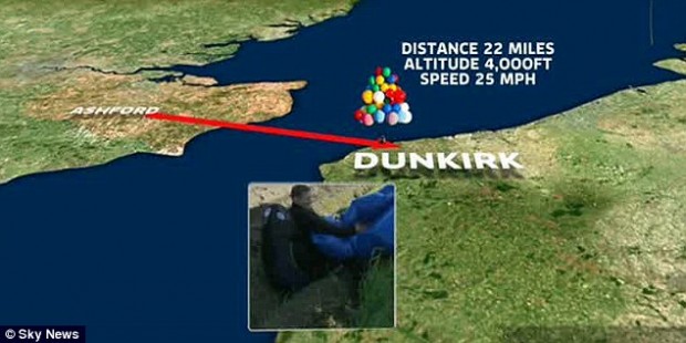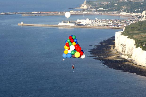 В 2010 году Джонатан Трапп совершил перелет через Ла-Манш на связке разноцветных воздушных шаров.