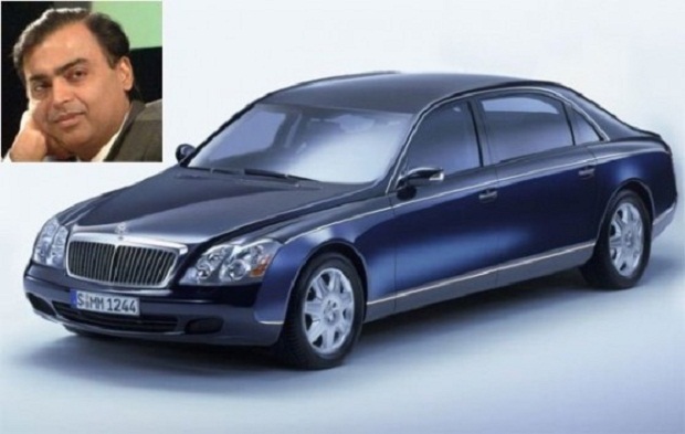 Председатель Индии с чистой прибылью в 22,3 млрд. долларов Мукеш Амбани, по словамForbes, является одним из самых богатых миллиардеров в индийским мерам. Он ездит на одном из самых роскошных автомобилей, Maybach 62 класса, наряду с Mercedes S иMercedes SL500.