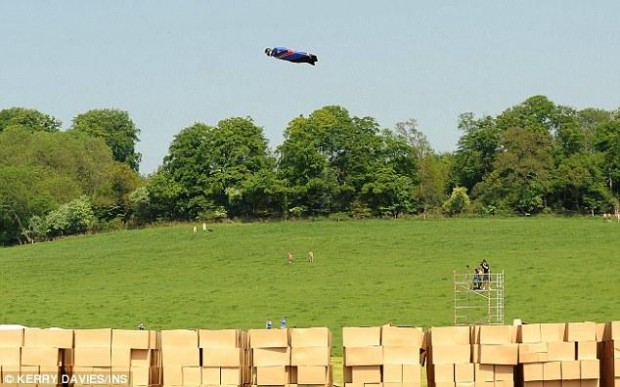 Кроме того, на земле были размещены 18600 картонных коробок, на которые Коннери и приземлился.