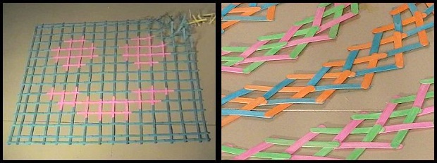 Палочки сплетаются вместе, образуя что-то наподобие сетки. Конструкция находится в напряжении и при одном простом движении конструкция взрывается.
