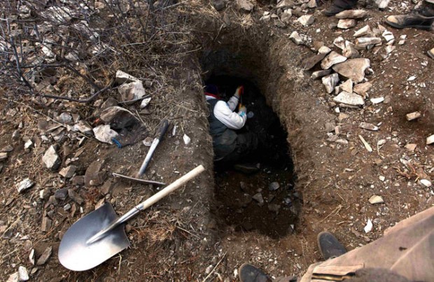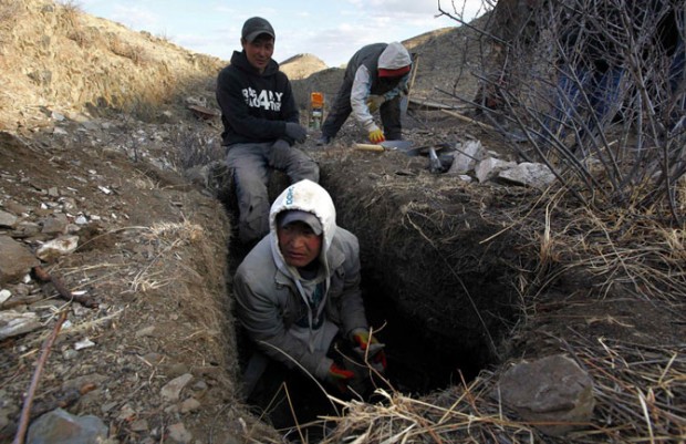 А вот и они, роют ямы к юго-западу от Улан-Батора.