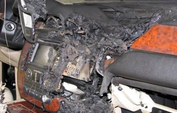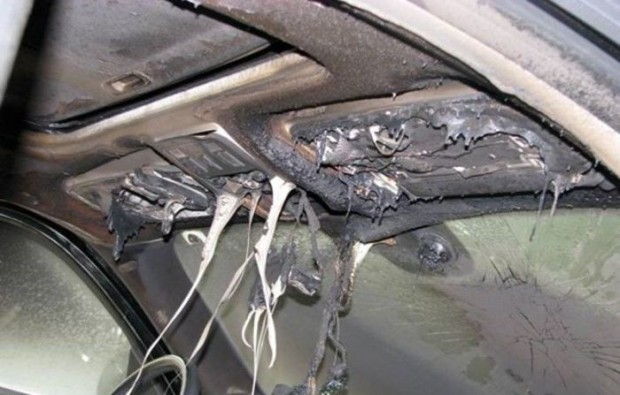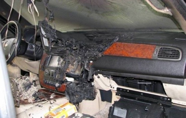 Совсем ничего хорошего! Владельцу этого авто крупно не повезло — его GPS приемник основательно нагрелся на солнце и его аккумулятор взорвался — последствия внутри поста.