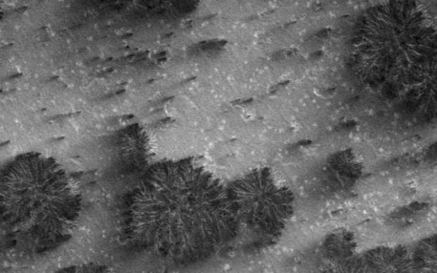 Ветки, которые Кларк принял за деревья, на самом деле исследователи Марса называют пауками. Они действительно напоминают ветки деревьев и меняются в разные сезоны из-за таянья углекислого газа в ледяных шапках, которые находятся на полюсах Красной планеты. Когда лед СО2 превращается в газ, он начинает струиться, создавая ветки.
