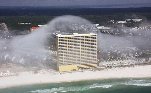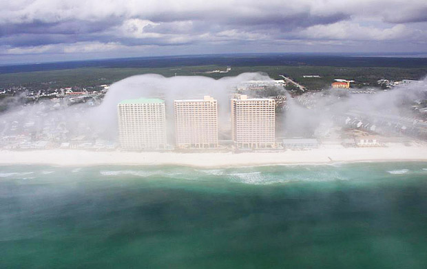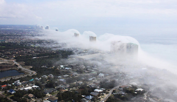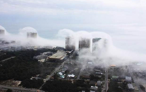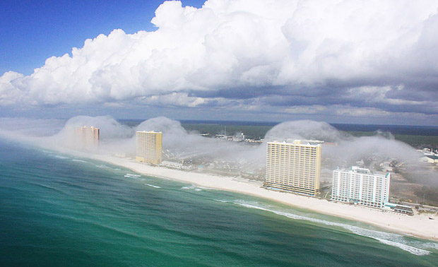 В США, в штате Флорида, Джеару Хоттею удалось сфотографировать с вертолета уникальное природное явление. Его прозвали небесное цунами, так как было впечатление, что цунами из облаков накрыло все побережье Панама-Сити. Высота волн была настолько большой, что многоэтажки, которые стоят на побережье, практически исчезли в облачно-водяных массивах.