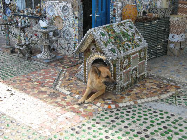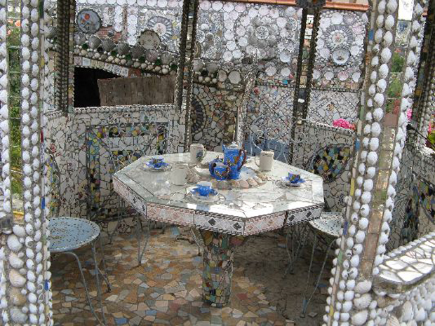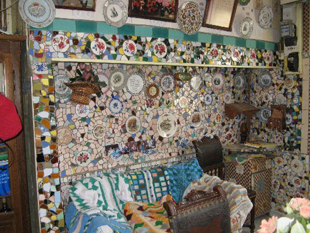 Ранее дом принадлежал Роберту Вассеру и его жене, которые отказались от каких бы то ни было обоев и украшали стены мозаикой из разбитой посуды.