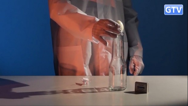 Для опыта понадобится: вареное куриное яйцо, бутылка с широким горлышком, но меньшим чем диаметр яйца, спички, бумажка.
