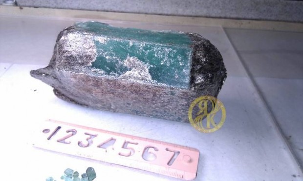На Малышевском месторождении на Урале был найден огромный изумруд. Масса штуфа составила 1011 г. Расчетный вес изумруда — 1000 г. Камень был обнаружен на конвейере изумрудоизвлекательной фабрики Калининградского янтарного комбината 13 марта. На сайте компании приводятся следующая информация о характеристиках изумруда: качество – сорт 2 (полупрозрачный), цвет – сорт 1 (темно-зеленый).