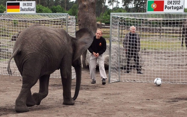 2. Слониха Нелли тоже…эээ…предсказала, что сборная Германии выиграет у Португалии, забив гол в ворота с португальским флагом в зоопарке Ходенхагена, Германия.