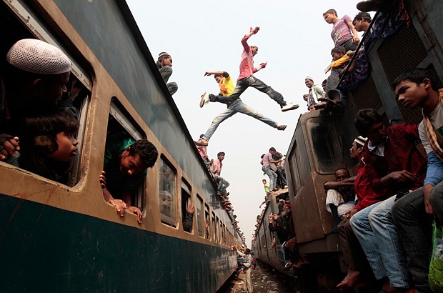 Фото дня 06.02.2013 Паломники спрыгивают с прибывшего поезда на заключительную молитву на Бишва-ижтема в Дакке. Знаешь того, кому необходимо увидеть это? Сообщи: