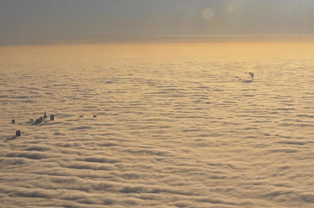 Фото дня 11.12.2012 Так выглядит с воздуха окутанная необычайно густым туманом столица Польши. Создается впечатление, что на Варшаву просто опустилось облако. Или ее самые высотные здания внезапно начали доставать до верхней кромки облаков. Знаешь того, кому необходимо увидеть это? Сообщи: