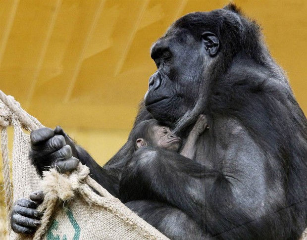 Фото дня 12.05.2012 Горилла Челева со своим малышом, которому всего один день, в зоопарке Кантабрии, северная Испания. Это первый детеныш гориллы, рожденный в неволе в Испании. Знаешь того, кому необходимо увидеть это? Сообщи: