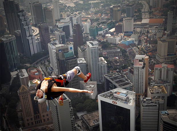 Фото дня 14.11.2012 Французская бейсджампер Флориан Пэ парит на высоте 421 метра над центром Куала-Лумпура. Знаешь того, кому необходимо увидеть это? Сообщи: