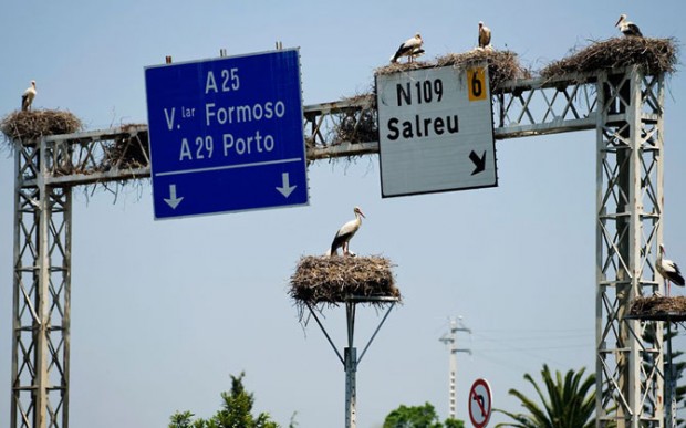 Фото дня 18.06.2012 Видимо, аисту понравился дорожный указатель недалеко от Авейро, Португалия. Он здесь соорудил себе гнездо. Знаешь того, кому необходимо увидеть это? Сообщи: