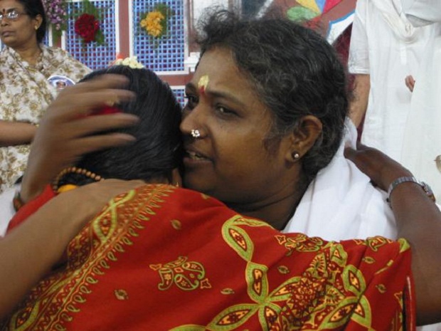 Мата Амританандамайи, известная также как «обнимающая мать» — признанный гуру индуизма, многие последователи почитают её как святую. Ещё в юном возрасте она стала обнимать разных людей просто так, хотя индийской девушке непозволительно касаться посторонних, особенно мужчин, и родители постоянно наказывали её за это.