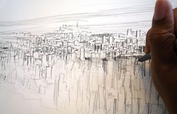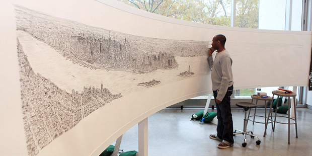На каждую такую большую работу (а Нью-Йорк не первый город, нарисованный Стивом) он использует примерно дюжину ручек и тратит неделю времени.