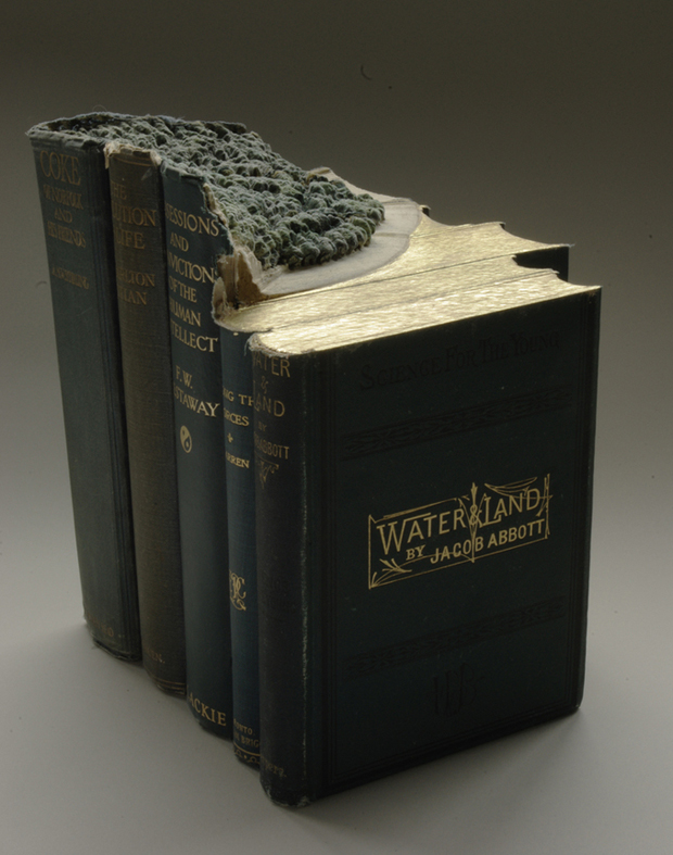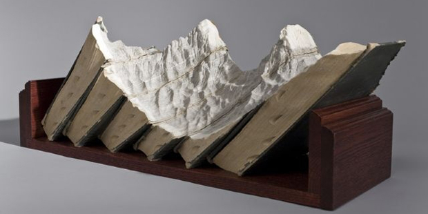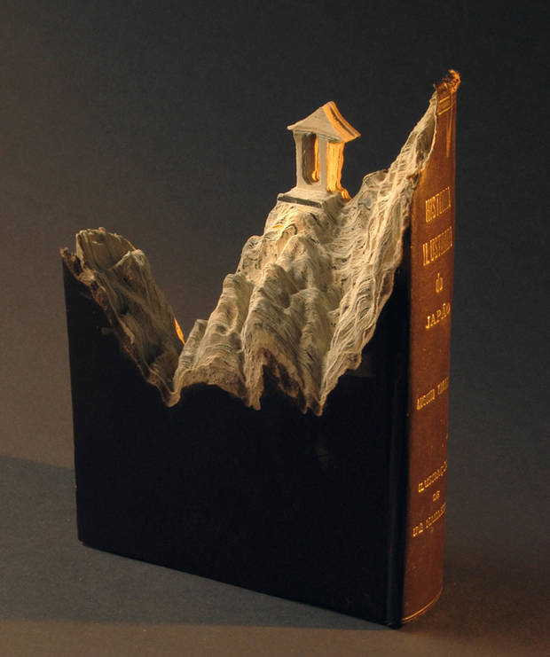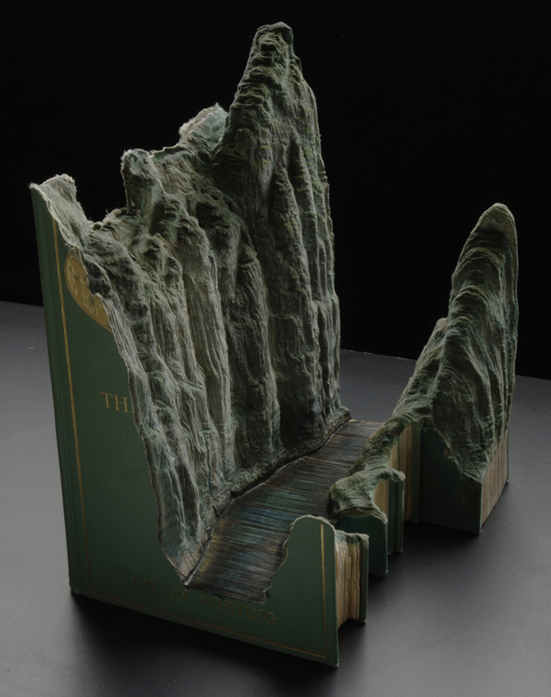 Из них он вырезает настоящие горные ландшафты и плато, затем раскрашивает в природные цвета. По словам автора, ненужные книги со временем превращаются в горы, он только помогает принять им настоящий облик.