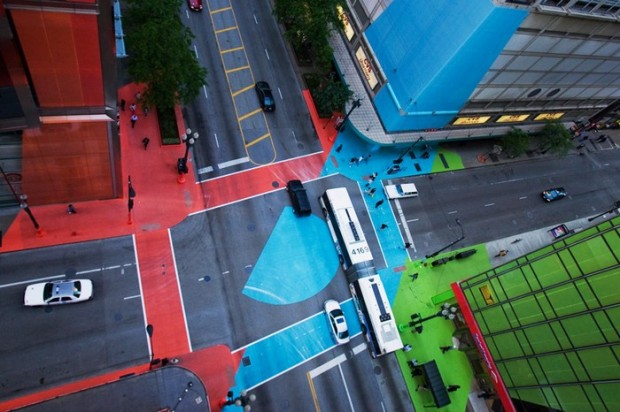 Конечно, многие города мира не имеют собственного уникального лица. Однако это утверждение совершенно не касается Чикаго — этот мегаполис ярок, красив и пестр! В том числе, и благодаря таким арт-проектам, как необычная цветная инсталляция Color Jam, появившаяся недавно на одном из перекрестков в центре города.