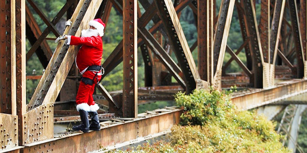 В жизни всегда есть место чуду. И если верить и ждать, то оно обязательно случится. И вот уже 13 зим подряд гватемальские пожарные дарят детям из столичных трущоб маленькое чудо. Незадолго до Рождества к ним с моста спускается Санта и приносит подарки. На фото: Пожарный Гектор в костюме Санты спускается с моста к детям. (Reuters / Jorge Dan Lopez)