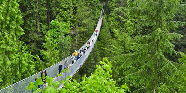 Подвесной мост Капилано расположен в округе северного Ванкувера, Британская Колумбия, Канада. С самого первого взгляда становится понятно, почему мост приобрел популярность среди туристов. Под всей длиной конструкции, равной 136 метрам, открывается великолепный вид на реку. На высоте 70 метров каждый из 80000 туристов в год может насладиться красотой природы. Кстати, парк доступен для посещения не только летом, но и зимой, поэтому любой желающий может отпраздновать новый год или рождество на фоне ярких огней подвесной конструкции.
