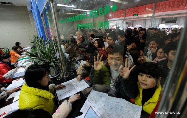 4 января в Китае заключили брак миллионы пар