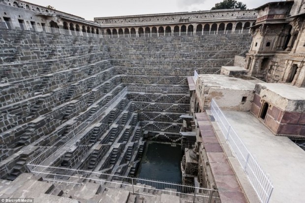Невероятно красивая искусственная лестница в Индии, состоящая из 3500 ступенек, которые позволяют людям спускаться за водой круглый год. Несмотря на открытую архитектуру, температура на дне колодца не превышает 5,5С.