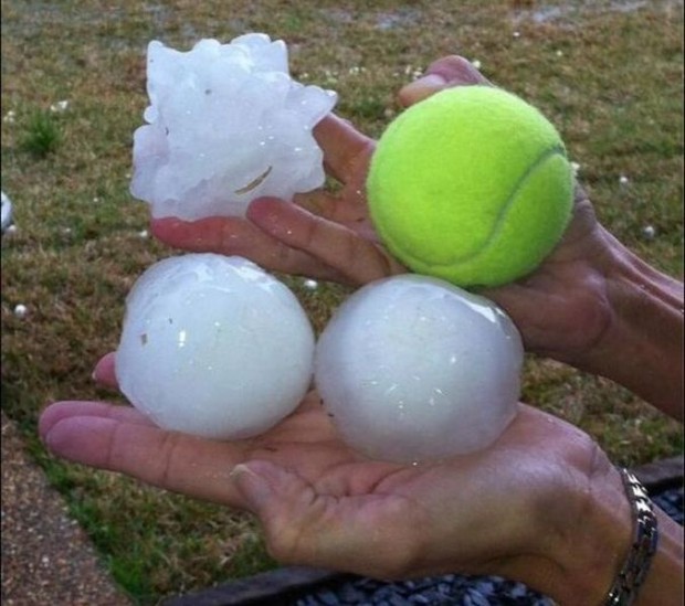 В штате Миссисипи прошел град внушительных размерах. Он повредил множества автомобилей и крыши домов. Размеры града можно сравнить с теннисным мячом.