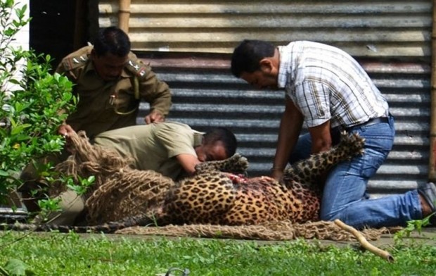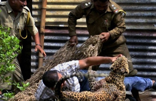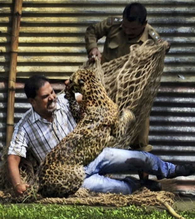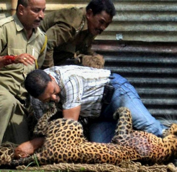 3 июня 2012 года дикий зверь ранил 13 человек в городке Тинсукия в штате Ассам. Один бравый мужик уложил леопарда голыми руками, правда не без посторонней помощи. Однако фотографии говорят сами за себя.