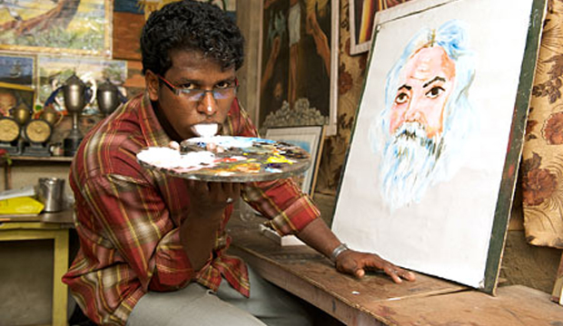 Художница из Тегерана Зохре Этезад Салтане, родившаяся без рук и научившаяся писать картины ногами, стала вдохновителем для художника из Индии. Мастер пишет свои картины – языком. Нет, он не держит кисточки ртом, а действительно пишет картины языком, окуная его в краску. Мастер преподает уроки рисования в одной из школ в штате Керал и зовут художника Ани К.