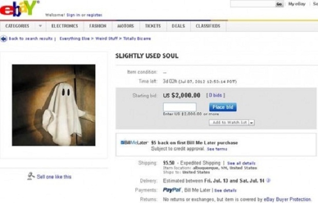 На всемирном аукционе Ebay, похоже, наступает рай для инфернальных существ, которые жаждут заполучить человеческую душу, да ещё и за бесценок. Люди, доведённые до отчаяния безденежьем и критическими ударами судьбы, готовы продавать не только последнюю рубаху, но и даже свои духовные оболочки. Так, американка Лори Н. из города Альбукерке, попав в аварию по вине пьяного водителя, лишилась возможности зарабатывать на жизнь из-за перенесённой комы, а также многочисленных переломов и сотрясений. И, чтобы хоть как-то компенсировать ту гору отчаяния и долгов, которые свалились на её хрупкие женские плечи, Лори решилась на отчаянный шаг, предложив на аукционе свою слегка потрёпанную душу всего за 2 000$. Я предлагаю не просто некую свою частицу в качестве бесполезной вещи. Так как мне трудно в данный момент заботиться о своём бренном теле, то я надеюсь отдать свою душу кому-нибудь на сохранение, на то, чтобы её не испортить и не погубить окончательно. Вместе с душой я передам сертификат, который характеризирует мою духовную составляющую с разных сторон, и указывает на чёрные и белые пятна. Покупка души сродни покупке коллекционного автомобиля, где вы платите совсем не для того, чтобы на нём ездить, – утверждает Лори. Источник
