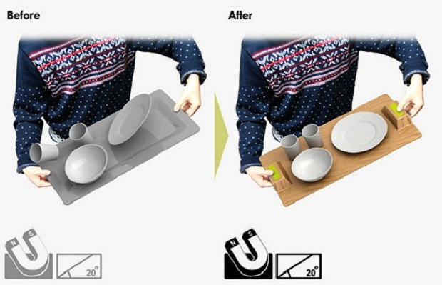 Новое изобретение может стать мечтой официантов и, возможно, положит конец падающим с его подноса тарелкам, чашкам и стаканам.