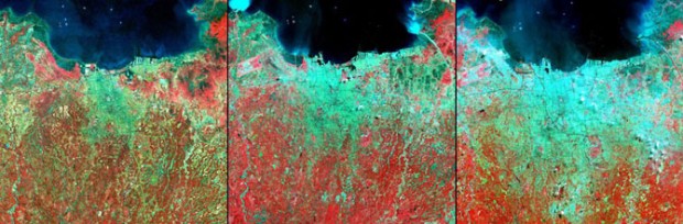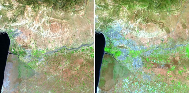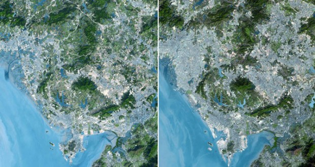 Снимки со спутника показывают, насколько технический прогресс изменил лицо Земли всего за несколько десятилетий. Все фотографии были сделаны спутниками, которые входят в программу «Landsat». 23 июля этой программе исполняется 40 лет. Программа, управляемая совместно НАСА и Американской геологической службой, направлена на систематический сбор данных о нашей планете. Начиная с 23 июля 1972 года, в рамках этой программы проводятся наблюдения со спутников.