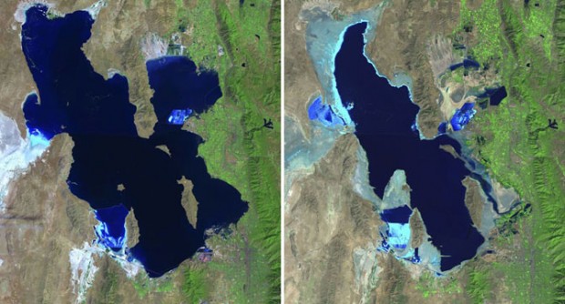 Большое Соленое Озеро, США, в 1985 и 2010 годах.