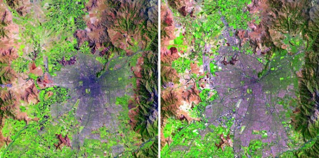 Сантьяго, Чили, в 1985 и 2010.