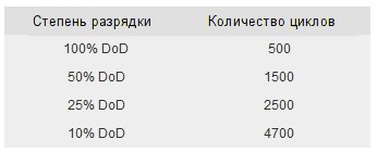 Не допускайте, чтобы устройство разряжалось до 0%. Лучше регулярно подзаряжайте его. Ниже вы можете увидеть таблицу зависимости количества циклов зарядки (срока службы аккумулятора) от глубины разрядки. Рассмотрев эту таблицу мы увидим, что лучше даже не опускать заряд до 50%, а подзаряжать каждый раз, когда аккумулятор разрядился процентов на 10-20%.