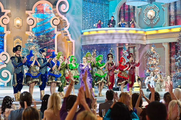 Пластмассовые яблоки, лимонад вместо шампанского, килограммы блесток и километры серпантина – на съемочной площадке самой консервативной программы центрального телевидения.